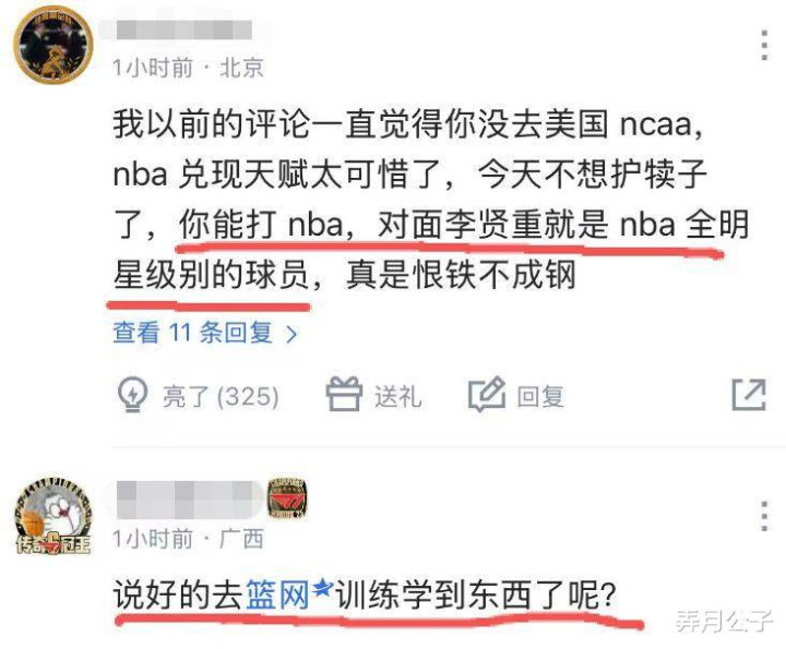 曾凡博本场比赛的拉胯表现,也引起了北京自家球迷的吐槽:“我以前的评论一直觉得你没去美国 ncaa、nba兑现天赋太可惜了,今天不想护犊子了,你能打nba,对面李贤重就是nba全明星级别的球员,真是恨铁不成钢。”