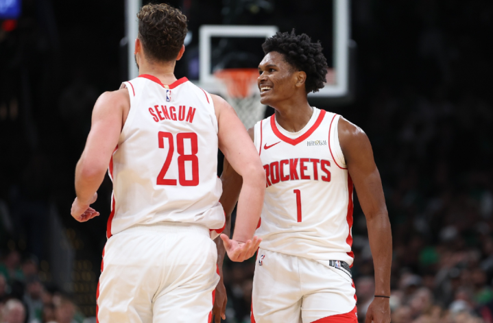 火箭开赛前23场比赛拿到16胜7负的战绩,排名西部第五,输7场比赛看起来也不算多,但却是非常典型的遇强不强。来看三组数据。首先,火箭本赛季面对西部前四时,战绩0胜4负。和掘金两场比赛,125-128惜败,109-112惜败;对阵马刺110-121完败,对阵雷霆124-125惜败;另外三场比赛分别输给了活塞+爵士+独行侠。其次,火箭本赛季SRS值是9.61,全联盟仅次于雷霆,这一数值能衡量赛程影响+比赛统治力,但是火箭场均48分钟回合数,降到96.6,联盟第29位。最后,申京本赛季On-Off值是-6.4,阿门是+9.5,杜兰特是-1.1。