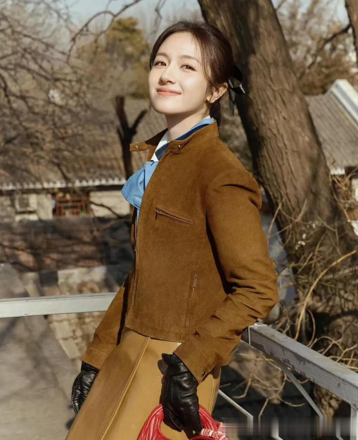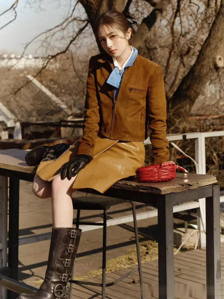 李兰迪私服穿搭真时髦! 皮衣+蓝衬衣+皮裙, 减龄洋气又高级!
