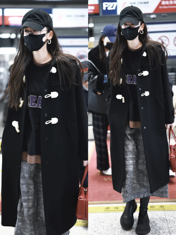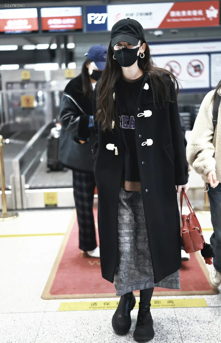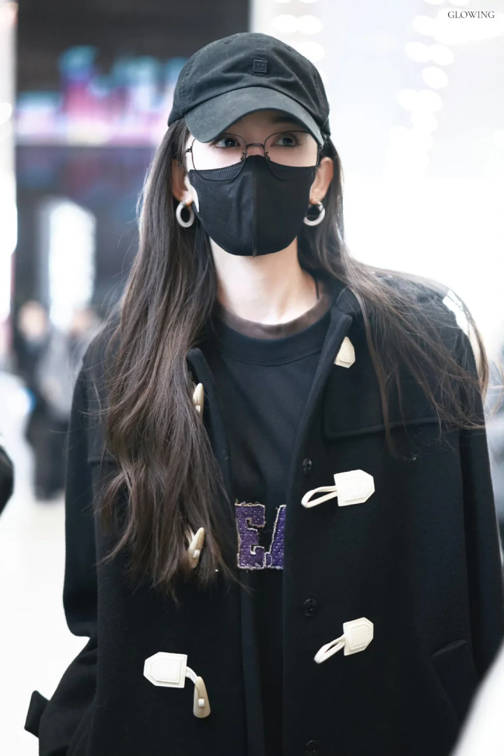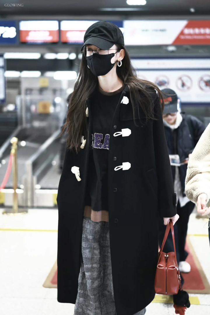 娜扎机场,隔着口罩都能看出来是个美女