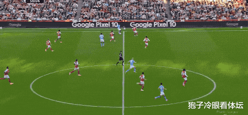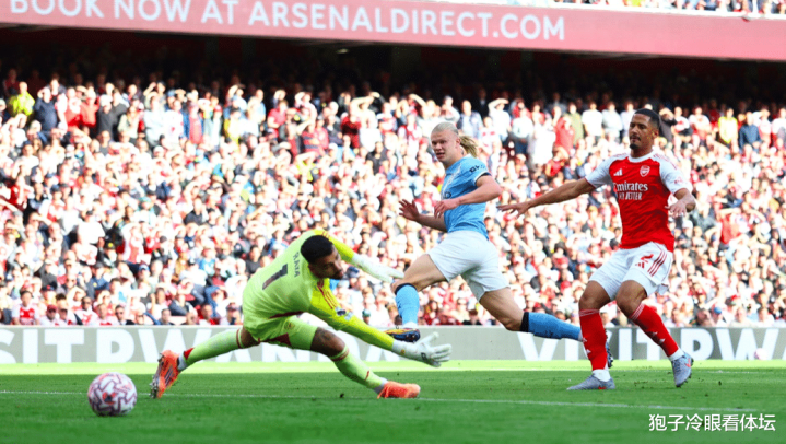 第38分钟,哈兰德和加布里埃尔抢位,多库渔翁得利带球突破,沿着枪手的禁区前沿一路横向盘带,罗德里的射门放了高射炮。