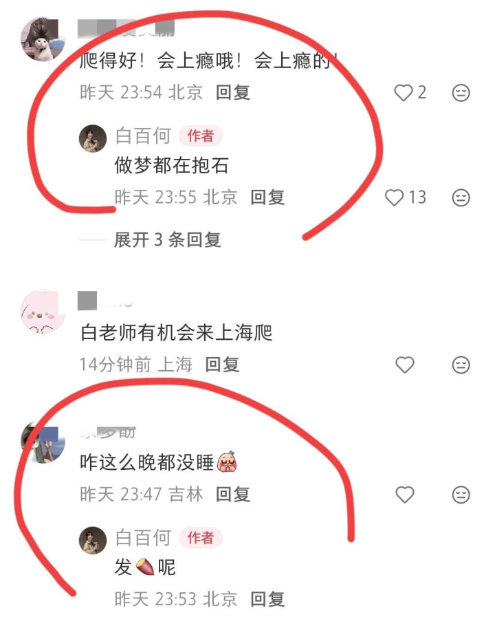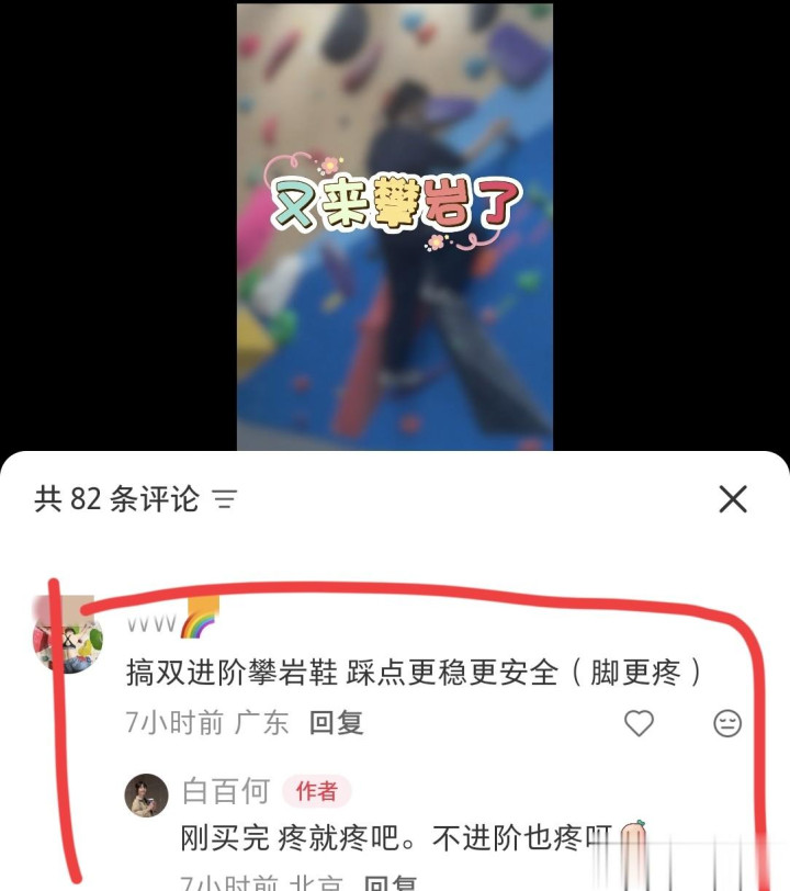 有人问她攀岩难度,她笑着自称“蠢蠢的抱石小白”,还骄傲分享“刷了三条v2”的小成就;网友好奇她的新攀岩鞋,她大方吐槽“刚买完,疼就疼吧”,还调侃自己特意买大一号“不然太难受了”,这般鲜活又接地气的互动,和此前网传情绪低落的模样判若两人。