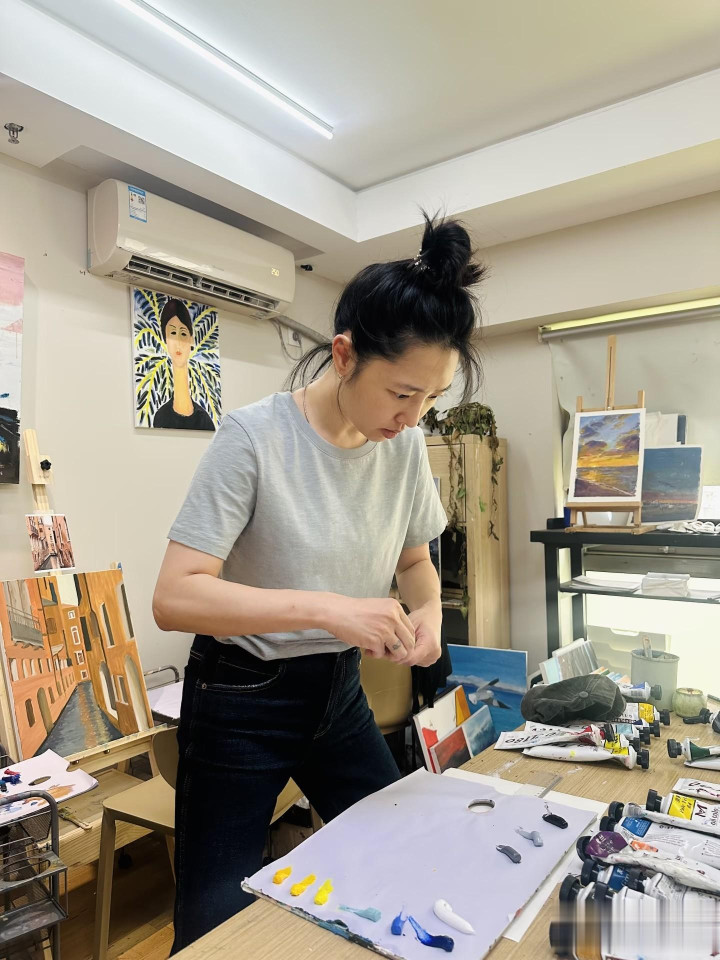 独处时,便在家静下心画油画,在色彩创作中沉淀自己,享受独属于自己的休闲时光。